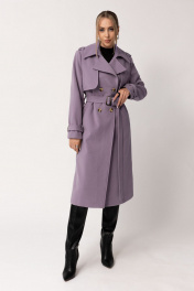 Демисезонное пальто с кокетками, погонами и шлицей из ткани Golden Valley 7119 фиолетовый