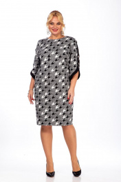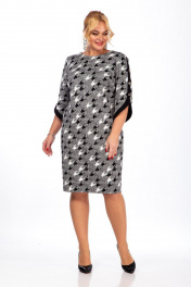 Платье женское из трикотажного полотна, полуприлегающего силуэта, с круглым вырезом горловины. Перед с нагрудными вытачками идущими от бокового шва к центру груди. Спинка без среднего шва. Рукава втачные, 3\4 с отделочными элементами и декоративными пуговицами.