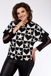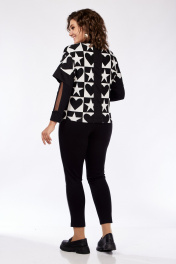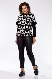 Комбинированные брюки, джемпер и жакет из текстиля и экокожи Grace for you 156 черный+белый