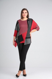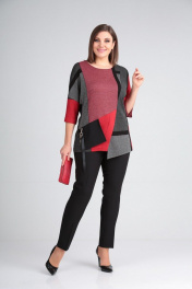 Демисезонный комплект из текстиля с асимметричным джемпером Grace for you 224/3 красный