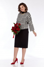 Джемпер - акрил 90%, полиамид 10%. Юбка – вискоза-60%, полиэстер-35%, лайкра -5%