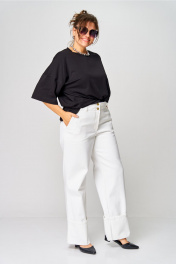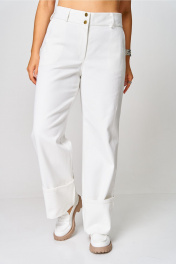 Женские брюки в благородном белом цвете — это классика, которая никогда не выходит из моды. Модель выполнена из плотной, но мягкой ткани, обеспечивающей комфорт на протяжении всего дня. Свободный прямой крой с высокой посадкой визуально вытягивает фигуру и подчёркивает талию. Элегантный акцент — широкий отворот внизу брюк — придаёт образу лёгкую небрежность и делает модель особенно актуальной в современных городских образах. Универсальный дизайн позволяет легко комбинировать брюки с деловыми рубашками, лёгкими блузами или базовыми футболками. Это идеальный вариант для тех, кто стремится выглядеть стильно в любой ситуации.