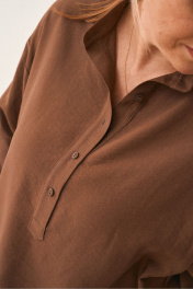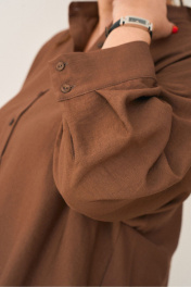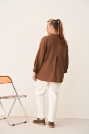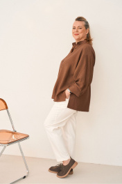 Стильная блузка-рубашка из фактурной ткани с деликатным «дорогим» эффектом. Лёгкий оверсайз обеспечивает комфортную посадку и свободу движения. Воротник-стойка добавляет образу современную элегантность. Преимущества: — актуальный оттенок — фактурная ткань — лёгкий оверсайз — комфортная посадка — универсальная стилизация Идеальная база для повседневных и более собранных образов.