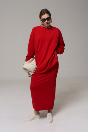 Макси-юбка из трикотажа и хлопка с разрезом для повседневной носки GRATTO 6415 рубиновый