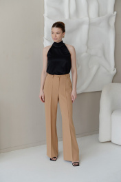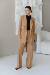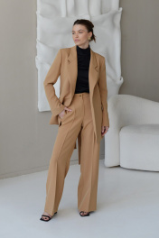 Широкие брюки с стрелками и карманами из костюмной ткани HELEN BIRCH B008 кэмел