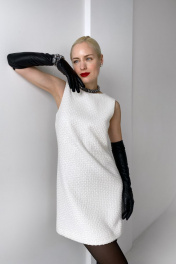 Лаконичнное мини платье из ткани букле. Платье на подкладке. Для создаания цельного образа рекомендуем жакет арт.J014b из аналогичной ткани. Модель на фото размера S, рост 172 см, размер платья S. Если вам требуется дополнительная информация или помощь в выборе подходящего размера, свяжитесь с нами – Деликатная ручная стирка при температуре воды до 30°C; – Гладить при температуре утюга до 110°C; – Не отбеливать; – Барабанная сушка запрещена. Обхват груди: 42/XS- 90 см, 44/S- 94 см, 46/M- 98 см, 48/L- 102 см. Обхват бёдер: 42/XS- 100 см, 44/S- 104 см, 46/M- 108 см, 48/L- 112 см. Длина по спинке: 42/XS-81 см, 44/S- 81 см, 46/M- 83 см, 48/L- 85 см. (рост 170). Длина по спинке: 42/XS-78 см, 44/S- 78 см, 46/M- 80 см, 48/L- 82 см. (рост 164).