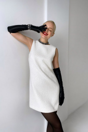 Классическое мини платье из букле с подкладкой HELEN BIRCH Pl044 молочный