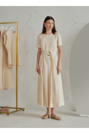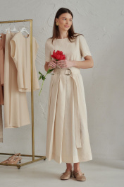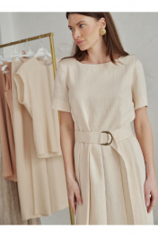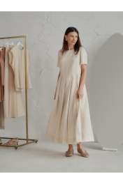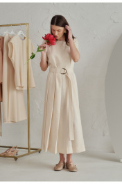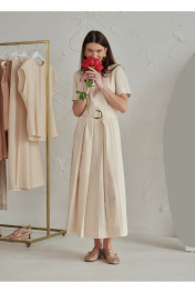 Элегантно-минималистичное платье со складками от линии талии, в комплекте пояс с пряжкой. Основой материала служит вискоза,нейлон и лён: вискоза и лён обеспечивает богатую, мягкую текстуру, а нейлон добавляет прочность, износостойкость и эластичность.
