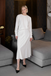 Юбка миди на подкладе из легкой текстильной ткани HELEN BIRCH U034b молочный - фото 1