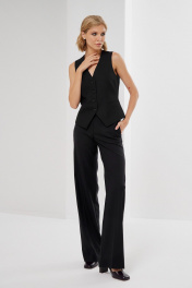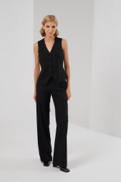 Прямые брюки с высокой посадкой – классика, в которой будет комфортно в любом сезоне. В комплекте с пиджаком из аналогичной ткани прямые брюки со стрелками сформируют идеальный деловой сет. – Свободный крой – Стандартная посадка – Застежка на молнию и крючок – Боковые карманы – Притачной пояс со шлевками – Заутюженные стрелки – Сзади декоративные карманы Модель на фото размера S (42), рост 170 см, размер брюк S(42) Если вам требуется дополнительная информация или помощь в выборе подходящего размера, свяжитесь с нами – Деликатная стирка притемпературе воды 30°C – Гладить при температуре утюга до 110°C; – Не отбеливать; – Сухая чистка (химчистка); – Барабанная сушка запрещена. Обхват талии: XXS – 66 см, XS – 70 см, S – 74 см, M – 78 см, L – 82 см, XL – 86 см, XXL – 90 см. Обхват бедер: XXS – 90 см, XS – 94 см, S – 98 см, M – 102 см, L – 106 см, XL – 110 см, XXL – 112 см. Длина изделия сбоку c учётом пояса – 113 – 114 см (Рост 170). Длина изделия сбоку c учётом пояса – 109 – 110 см (Рост 164).