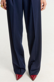 Классические брюки — идеальный выбор для тех, кто ценит комфорт и высокое качество. Брюки со средней посадкой, широкие, со складками выходящими из пояса. Брюки выполнены из костюмной ткани с шерстью. — Свободный крой — С средней посадка — Застежка на молнию и крючок — Боковые карманы — Заутюженные стрелки — Спереди защипы — Притачной пояс со шлевками Модель на фото размера 42/XS, рост 170 см, размер брюк 42/XS. Обхват талии: XXS/40 – 64 см, XS/42 – 68 см, S/44 – 72 см, M/46 – 76 см, L/48 – 80 см, XL/50 – 84 см. Обхват бёдер: XXS/40 – 94 см, XS/42 – 98 см, S/44 – 102 см, M/46 – 106 см, L/48 – 110 см, XL/50 – 114 см. Длина изделия сбоку – 115-116 см (Рост 170). Длина изделия сбоку – 111-112 см (Рост 164). – Деликатная ручная стирка притемпературе воды 30°C – Гладить при температуре утюга до 110°C; – Не отбеливать; – Сухая чистка (химчистка); – Барабанная сушка запрещена.