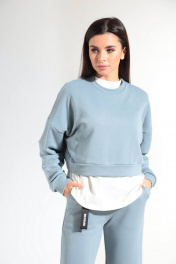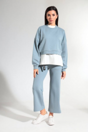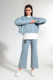 Демисезонный женский костюм из хлопкового трикотажа HIT 3081 серо-голубой