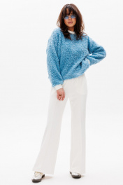 Стильный женский костюм. Свитшот укороченный свободного прилегания, выполнен из трикотажа «барашек», рукав длинный, манжет и горловина выполнены с контрастного довяза в цвет брюк. Брюки длинные, с легким расклешением от бедра, имеют отстрочные передние стрелки, выполнены из однотонного трикотажа. Пояс на резинке, по переду брюк два кармана в боковых швах. С костюмом можно смело создавать стильные образы как в комплекте, так и по отдельности. Длина свитшота по спинке 54 см, длина рукава от горловины 69 см. Длина брюк по боковому шву 11 см, по шаговому шву 80 см. Рост модели на фото 178 см, размер S (44). Размеры: S -44, M-46, L-48, ХL- 50, 2XL-52, 3ХL-54