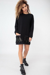 Платье-свитшот из трикотажа и хлопка с съемными карманами HIT 4011 черный