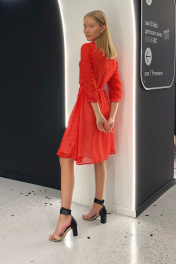 Классическое платье в белый горошек с съемным поясом и рукавом 3/4 i3i Fashion 102/2 красный_горох - фото 4