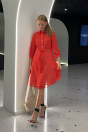 Классическое платье в белый горошек с съемным поясом и рукавом 3/4 i3i Fashion 102/2 красный_горох