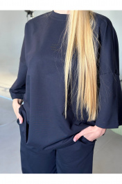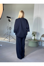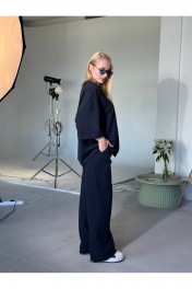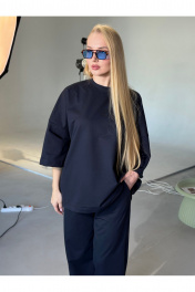 Современный костюм оверсайз. Выполнен из мягкого трикотажа 2х нитка (95% хлопок, 5% лайкра), который приятно прилегает к телу, тянется и сохраняет форму. Майка прямого свободного кроя oversize со спущенной линией плеча и углублённой проймой. Круглый вырез обработан притачной обтачкой (2 см). Длина — чуть ниже линии бёдер. По центру переда — декоративная надпись. Брюки-палаццо прямого силуэта с чистой линией кроя. В боковых швах — карманы с отрезным бочком. Притачной пояс (5 см) на резинке с отделочной строчкой и внутренней кулисой со шнуром обеспечивает комфортную посадку. Сдержанный, актуальный комплект для городских и повседневных образов. one size 44-50. one size plus 52-60.