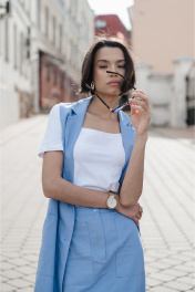 «origami2» - ваш must-have для жарких будней. Комплект состоит из лёгкой голубой юбки миди, длинного жилета и футболки. Эластичная вставка на задней части пояса юбки обеспечивает идеальную посадку без лишнего давления. Удобные накладные карманы прячут телефон и ключи, чтобы руки оставались свободными. Длина юбки 80 см. Длинный жилет того же нежного голубого тона легко надевается на майку и мгновенно добавляет образу уверенности: он визуально вытягивает силуэт и становится ярким акцентом даже в самый будний день. Длина жилета 125 см. Белоснежная хлопковая майка с рукавом реглан приятна телу и гармонично дополнит голубой костюм. Наденьте эту модель для встречи с подругами, продуктивного дня в офисе или неспешного шопинга по городу — и почувствуйте на себе восхищенные взгляды.