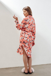 Платье-рубашка с разрезами и воротником на пуговицах INAYA 03-001 коралловый_букет - фото 2