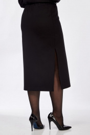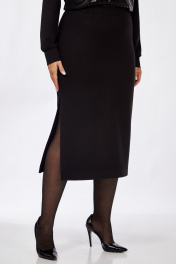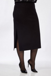 Юбка женская, длинная, прямого силуэта, выполненная из плотного трикотажного полотна. Пояс юбки на резинке. В боковом шве с одной стороны - разрез. Длина изделия с учетом ширины пояса (ширина пояса 4 см) 82см, высота разреза от низа 40см.
