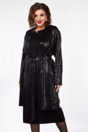 Кардиган женский, выполненный из ткани в пайетки, без застежки, который будет незаменимым предметом гардероба в период новогодних праздников. Кардиган прямого свободного силуэта с поясом. Спинка без конструктивных элементов. Рукава втачные. Длина рукава – 61см, длина изделия 97см.