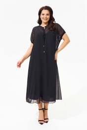 Платье А-силуэта из шифона с декоративной капелькой, летнее IVA 1586 черный