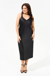 Платье-комбинация из шелк-сатина на бретелях, летнее платье IVA 1588 черный