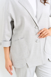 Женский жакет полуприлегающего силуэта без подкладки выполнен из костюмной ткани с добавлением вискозы 63%. По переду изделия функциональные накладные карманы; воротник пиджачного типа; рукава со спущенной линией плеча, внутренней патой и манжетой, что позволяет регулировать высоту рукава и представляет собой стильную деталь с изысканным акцентом; линия низа фигурной формы; застежка на петли и пуговицы. Жакет полностью соответсвует заявленному размеру. Пользуйтесь таблицей замеров готового изделия. Уход за натуральными тканями: - рекомендована бережная стирка притемпературе не выше 30 градусов; - глажение при температуре прессующей поверности 110 градусов.