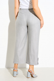 Женские укороченные брюки выполнены из натуральной костюмной ткани с функциональными карманами по переду, в боковых швах вставлена резинка, по низу брюк декоративные шлицы, застежка на молнию, петлю и пуговицу. Брюки полностью соответсвуют заявленному размеру. Пользуйтесь таблицей замеров готового изделия. Уход за натуральными тканями: - рекомендована бережная стирка при температуре не выше 30 градусов; - глажение при температуре прессующей поверности 110 градусов.