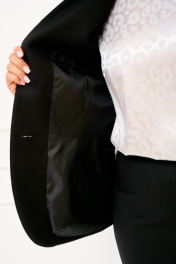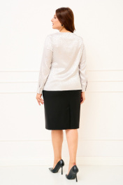 Жилет и юбка: костюмная ткань вискоза - 70%, полиэстер - 25%, спандекс - 5%. Блуза: сатин полиэстер - 100%.