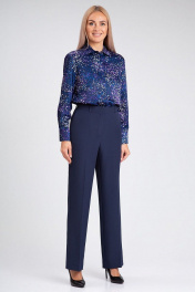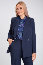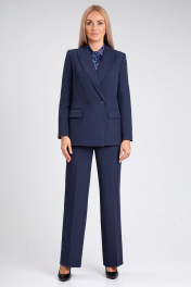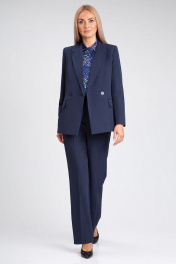 Деловой костюм-двойка из текстиля с высоким поясом IVARI 10609 темно-синий