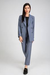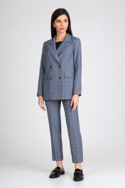 Синий двухбортный пиджак в клетку для делового образа IVARI 205 клетка_сирень