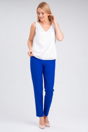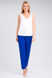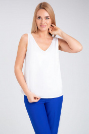 Базовая блузка-топ свободного силуэта. Выполнена из полотна шелковистой фактуры с атласным блеском. V-образный вырез горловины спереди и сзади. Передняя полочка с грудными вытачками. Блузка двухслойная по переду и спинке, благодаря чему не просвечивается.