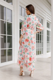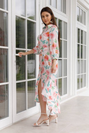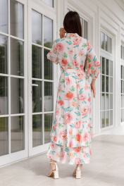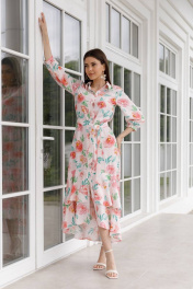 Эффектное женское платье яркой расцветки из вискозы, низ юбки - воланы, застегивается полностью на пуговицы. Оно одновременно элегантное, романтичное и сексуальное. В нем можно и на свидание, и на торжественное мероприятие, и на прогулку.