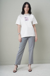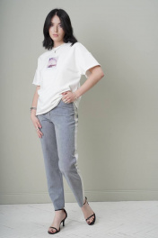 Джинсы молодежные из полотна итальянского производства, прямого силуэта, с контрастными лампасами по бокам ( светлая сторона ткани), с закругленными карманами и застежкой "гульфик" по переду, кокеткой, накладными карманами и декоративной нашивкой с логотипом фирмы по ЗП. Длина по боковому шву 100 см, ширина по талии 34,5 36,5 38,5 40,5 см (42, 44, 46, 48 рр), ширина по бедрам 48, 50, 52, 54 см соответственно. Ширина штанины 20,5 21 21,5 22 см.