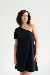 Молодежное платье-трапеция из трикотажа с асимметрией JRSy 2150 черный