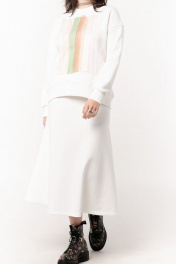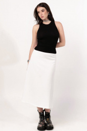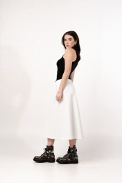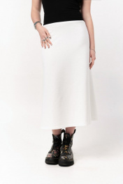 Юбка женская трепециевидного силуэта с расширением к линии низа, пояс на эластичной тесьме, без застежки. Изделие со средним швом. Длина по бок. шву - 83,5 см, ширина по поясу - 33, 35, 37, 39 см (42, 44, 46, 48 рр), ширина по бедрам - 51, 53, 55, 57 см соответственно