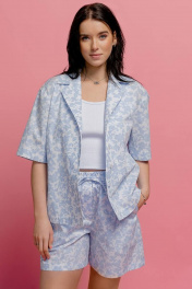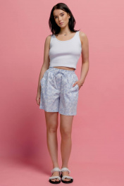 Летние хлопковые шорты с эластичным поясом и карманами JRSy 2319 голубые_цветочки