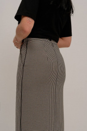 Юбка прямого силуэта из костюмной ткани, длиной макси, на притачном поясе с застежкой молнией в среднем шве ЗП. в боковых швах контрастный кант. По переднему полотнищу высокий разрез слева,наклонные карманы. Длина юбки 89 см, ширина по талии 33,35,37,39,51см (42,44,46,48,50рр) ширина по бедрам 48,50,52,54,54см соответственно длина разреза 47,5 см
