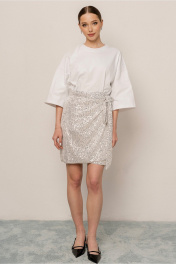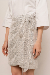 Юбка женская молодежная из полотна сетка в пайетки, без застежки с запахом и завязкой на пояс по талии, на подкладке, прямого силуэта ,длиной до линии колен Длина 48 см Ширина по талии в зависимости от завязывания Ширина по бедрам так же