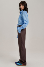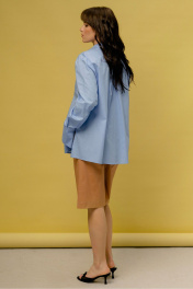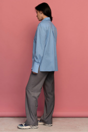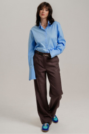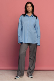 Молодежная блузка из блузочного полотна , со слегка спущенной линией плеча, с рукавом до запястья на удлиненной манжете с застежкой на пуговицу, с воротником на стойке. Перед с центральной застежкой на пуговицы, с накладным карманом с слева, спинка на кокетке и защипами на линии лопаток. Длина 73 см ширина по линии груди 55,57,59см. (42,44,46,рр) ширина по линии бедер 63,65,67см Длина рукава с удлиненным манжетом 76 см .