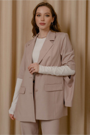 Бежевый жакет прямого силуэта с карманами и ремнем JRSy 2497 бежевый