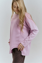 Демисезонный джемпер из трикотажа с карманом и довязом JRSy 2511 лаванда