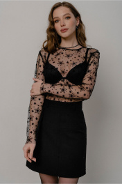 Джемпер молодежный из трикотажного полотна сетка с набивным рисунком звезды,полуприлегающего силуэта,без застежки.с рукавом рубашечного типа длиной до запястья. Длина 60 см. ширина по линии груди 44,46,48см. ( 42,44,46 рр) ширина по талии 40,42,44 см. ширина по низу 48,50,52 см. Длина рукава 61см .