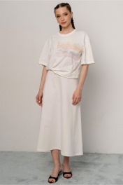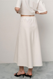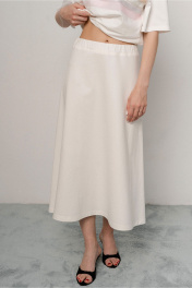 Юбка женская трепециевидного силуэта с расширением к линии низа,пояс на эластичной тесьме,без застежки.Изделие со средним швом.Миди длина по бок. шву - 83,5см, ширина по поясу - 33,35,37,39 см(42,44,46рр) ширина по бедрам - 51,53,55см соответственно.