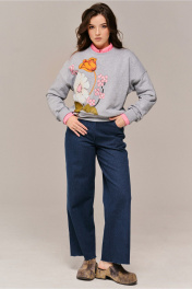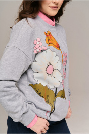 срок пошива модели 5 дней Джемпер (свитшот) молодежный из трикотажного полотна со спущенной линией плеча, с довязами по горловине и низу рукава и притачным поясом по низу. Декор - принт цветы Длина 64см. ширина по линии груди 57, 59,61,63см. (42,44,46,48рр) ,ширина по низу 52,54,56,58см Длина рукава от горловины 72см .