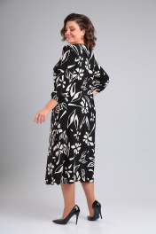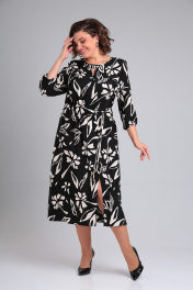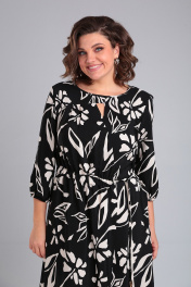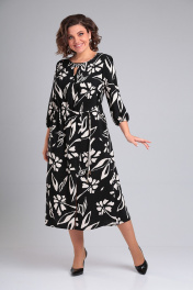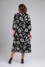 Платье женское, нарядное, А-силуэта, изготовлено из плательной ткани. Горловина круглой формы обработана окантовкой,на спинке застежка на петлю и пуговицу.. Рукав втачной длиной ¾, по низу присобран на резинку. Перед с асимметричным подрезом, в котором обработан вырез горловины и разрез. По линии талии имеется кулиса с декоративными завязками. В левой верхней части переда кокетка от которой заложены складки. Спинка цельнокроенная. Обращаем Ваше внимание, что цвет на экране может отличаться от реального. Длина платья по спинке – 120 см, рукава – 48 см. р.54 – ПОГ 58 см, ПОБ 66 см, р.56 – ПОГ 60 см, ПОБ 68 см, р.58 – ПОГ 62 см, ПОБ 70 см.