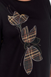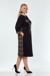 Платье женское повседневное выполнено, путем комбинирования ткани двух видов трикотажного полотна и из костюмно-плательной ткани в клеточку. Прямого силуэта. В боковых обработаны карманы. По переду дизайнерская вышивка. Рукава втачные длиной ⅞ с отложной манжетой из отделочной ткани. Обращаем Ваше внимание, что цвет на экране может отличаться от реального. Длина платья по спинке — 108 см, длина рукава — 47 см. р.56 — ПОГ 60 см ПОБ 62 см, р.58 — ПОГ 62 см ПОБ 64 см, р.60 — ПОГ 64 см ПОБ 66 см.