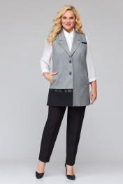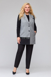 Комплект брючный 3-х предметный, изготовлен из костюмных тканей, состоит из жилета, брюк и джемпера.Жилет полуприлегающего силуэта. По переду рельефы, по правой полочке внизу контрастные вставки, по левой полочке вверху листочка. Воротник пиджачного типа, застежка центральная-бортовая на петли и пуговицы, в швах рельефов обработаны карманы. По спинке, декоративная планка, подрез и вставка из отделочной ткани. Жилетка на подкладке. Брюки средней посадки, пояс частично на резинке, застежка на молнию и пуговицу. Боковые карманы. Сзади кокетка. Блуза из легкой ткани.Воротник стояче- отложной, застежка планка на петли и пуговицы. Рукава втачные. Обращаем Ваше внимание, что цвет на экране может отличаться от реального. Описание Длина жилета по спинке – 79 см. р.54 – ПОГ 57 см, ПОБ 61 см, р.56 – ПОГ 59 см, ПОБ 63 см, р.58 – ПОГ 61 см, ПОБ 65 см. Длина брюк по боковому шву – 98 см. р.54 – ПОБ 57 см, р.56 – ПОБ 59 см, р.58 – ПОБ 61 см. Длина джемпера по спинке – 65 см, рукава — 60 см. р.54 – ПОГ 51 см, ПОБ 54 см, р.56 – ПОГ 53 см, ПОБ 56 см, р.58 – ПОГ 55 см, ПОБ 58 см. Длина блузы по спинке – 67 см, рукава — 48 см. р.54 – ПОГ 57 см, ПОБ 62 см, р.56 – ПОГ 59 см, ПОБ 64 см, р.58 – ПОГ 61 см, ПОБ 66 см.