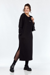 Платье женское прямого силуэта изготовлено из трикотажного полотна. Горловина круглой формы. На детали переда сделана печать. В боковых швах обработаны карманы, разрезы внизу. Рукава спущенные длинные. Обращаем Ваше внимание, что цвет на экране может отличаться от реального. Длина платья по спинке — 126 см, длина плеча + рукав — 70 см. р.50 — ПОГ 53 см ПОБ 56 см, р.52 — ПОГ 55 см ПОБ 58 см, р.54 — ПОГ 57 см ПОБ 60 см, р.56 — ПОГ 59 см ПОБ 62 см.